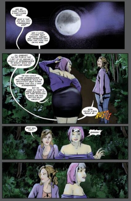Young Westron vies with adult Westron for attention from the audience. It is a duology with parallel storylines, featuring the same main character at different points in his life. Perhaps we are fortunate to be given two stories, twinned mysteries to resolve within one issue. (A preview of pages from the second issue indicates the same structure will be pursued throughout the series.) The obvious problem is one of execution: a single issue of 32 pages does not give both of stories much opportunity to unfold. We think suspense titles need room to breathe, and one of the duology must pay the price. We see this in the first story, where the creative team stretch out the tension in the dark forest. But the flashback is jammed into the remaining pages. Young Westron loses out to adult Westron, at least in this first issue.