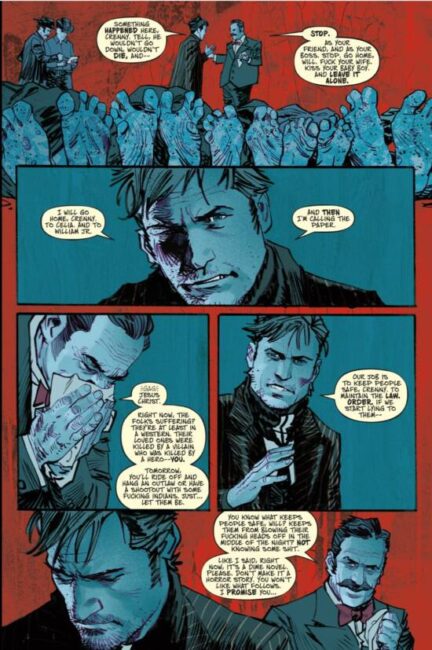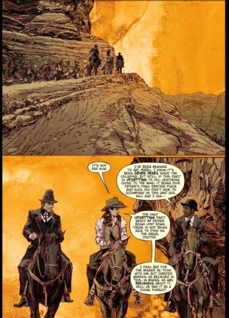 Western comics, to a non-American audience, might seem unexpectedly resilient. But the themes out of the Old West seem to be nestled in the American psyche. And Western horror is such a particularly American theme. Your reviewer first encountered Western horror in Vertigo Comics’ Jonah Hex: Riders of the Worm and Such (1996), but “Weird Western” has a long pedigree at DC Comics. (It would be interesting to know the point of conception of the genre. Wikipedia does not have much to say: Horror Western – Wikipedia . Perhaps it has long roots twined out of Louisiana’s American Gothic, explored – literally – in the as-yet unfinished Manifest Destiny – see Manifest Destiny Volume 6 (review): Fortis and Invisibilia – World Comic Book Review.)