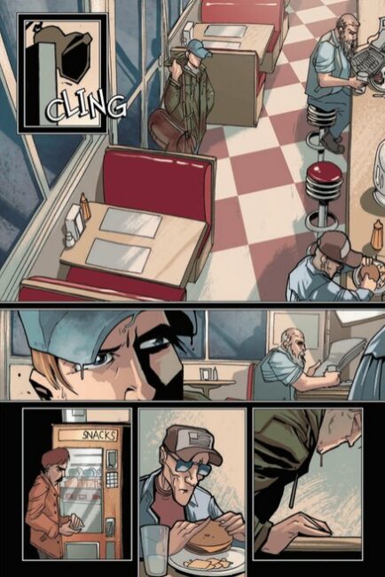 There’s also an effective sense of looming danger introduced through the antagonist, Agent Sarling. Even with limited page time, Sarling establishes the stakes through decisive, ruthless action. The implication is clear: others like Jim are already silenced. That tension hangs over the entire issue, giving even slower moments a sense of urgency.