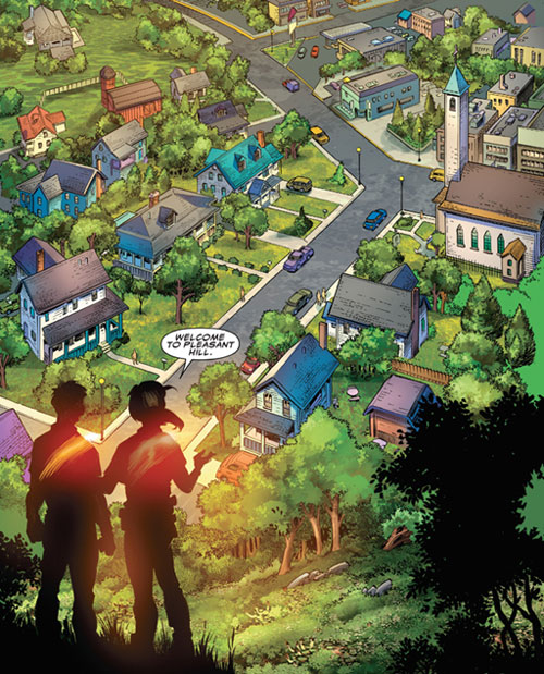 As for Pleasant Hill, it is exactly what the name expresses. This is an idyllic community with a happy populace and a zero crime rate. Regular readers of Marvel Comics’ titles will recognize that many of the residents of Pleasant Hill are named after established Marvel Comics characters. Everyone is suspiciously willing to help Jim acclimate to his new home, and are even helping him regain his lost memories.