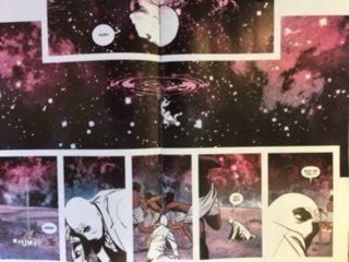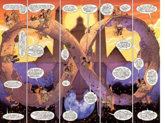 Issue ten has some quite spectacular artwork especially towards the end, when Spector accepts a quest by the Egyptian god Anubis, in exchange for the soul of a character called Crawley (a quick Google search indicates that this character is a homeless man who has been an informant for Moon Knight in previous stories). The issue inverts, requiring the reader to turn the issue upside down as the character passes through strange realms. This is reminiscent of Alan Moore’s work on “Promethea” for America’s Best Comics from 1999-2005: one of the most remarkable images from “Promethea is set out below: