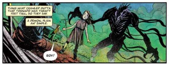 And there is a sudden shift in tone in the comic from this point on. The plot dealing with the struggles of a family dealing with the onset of a debilitating and progressive mental disorder morphs: a magical storm and a twenty-foot demon crosses paths with Roy’s wife and daughter.
