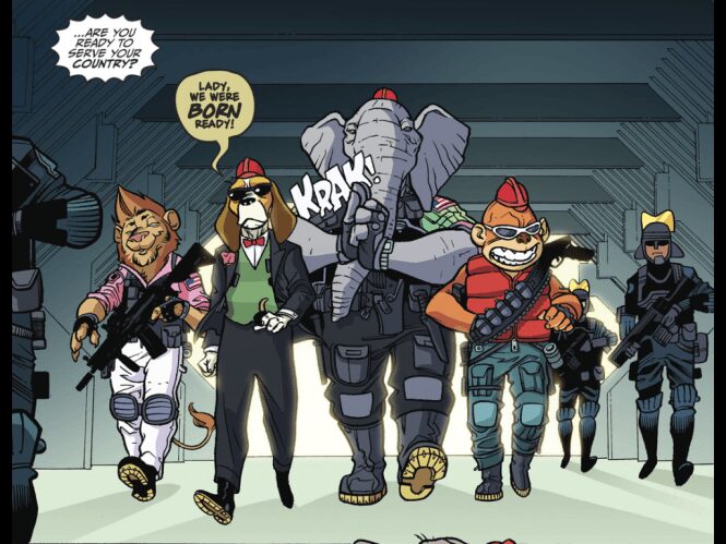 “Suicide Squad” has always featured a dash of sarcastic humor to spice up its narratives, and so the fact that The Banana Splits are naïve, wacky and have no military training is played for laughs. On the other hand, a group consisting of an elephant, a lion, a monkey, and a beagle have among them abilities that are useful in a fight, such as a keen sense of smell and enough brute strength to tear a robot in half. With members of the Squad guiding members of the Banana Splits, they make short work of their enemies.