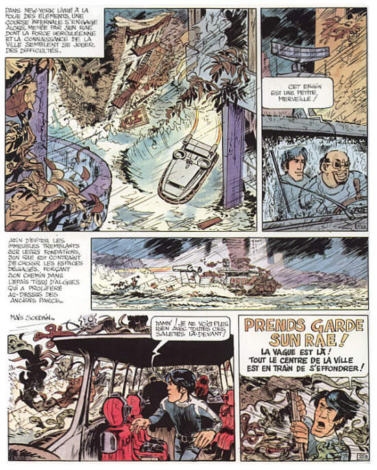 The main characters are essentially time police, entrusted with stopping rogue time travelers from taking actions that result in paradoxes. Given the palette for the stories, published over a forty-three year period, involved any aspect of time and space, “Valérian and Laureline” has many similarities to the BBC’s long running television production, “Dr Who”. In the first collection, “The City of Shifting Waters”, the characters are sent to New York in 1986 to deal with the evil time-travelling Xombul, only to find that history has been changed – the world is in ruins and New York is about to be swallowed by the ocean. The two protagonists must unravel the paradox and save the future.