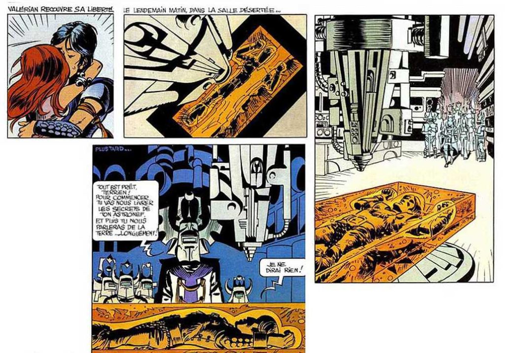 “Valérian and Laureline” appeared in “Pilote” magazine from 1967 to 2010. Many of the elements in “Valérian and Laureline” can be found in the various “Star Wars” movies, and predate the motion pictures. Below is an example: encasement in carbonite / liquid plastic, a feature from both the second Star Wars motion picture, “The Empire Strikes Back” (1980), and from Valérian and Laureline: Empire of a Thousand Planets” (1971).