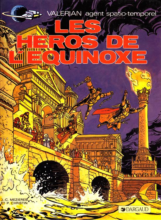 By way of example, in the 1983 story “Equinox of the Heroes”, in an exercise in finding the best person to help renew the sterile population of the planet Simlane, Valérian finds himself pitted in an arena contest against four powerful alien champions. These are Irmgaal, from Krahan, “Planet of the Great Black Warriors,” who wields “Zarkam,” an invincible sword. Irmgaal displays his might by destroying a giant rock. Ortzog from “industrious Bourgnouf,” destroys a huge column. Blimflim, a helmeted wizard from “iridescent Malamum,” controls plants to destroy yet another column. Valérian, clearly out of his league, uses his laser to zap a smallish stone decoration. It is an exercise in satire.