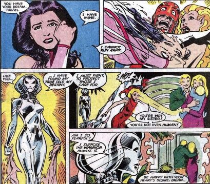 Each X-Man, save for one called Longshot (a character with no sense of desire, and so is absorbed by the Citadel), is offered their heart’s content. For Havok, a character which can project plasma bolts, it is becoming an actual star. For guests Captain Britain and his wife Meggan, it is the quiet life with children in the English countryside. A mutant named Dazzler is offered a sad multiple choice: becoming a judge as her family intended for her, being a rock star as she always wished to be, or following her secret desire, failure –