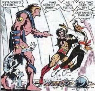 Psylocke is an upper-class English debutante, invited into the ranks of the X-Men only because she is a telepath (and thus assists with communication between team members) and because of her brother’s star power. (Much later, the character was re-jigged as a ninja with a brutal offensive ability.) Being the equivalent of a mobile telephone exchange is a poor reason to be on a superhero team. Psylocke is physically weak – she would easily break a finger if she punched one of the X-Men’s usual gallery of tough foes.