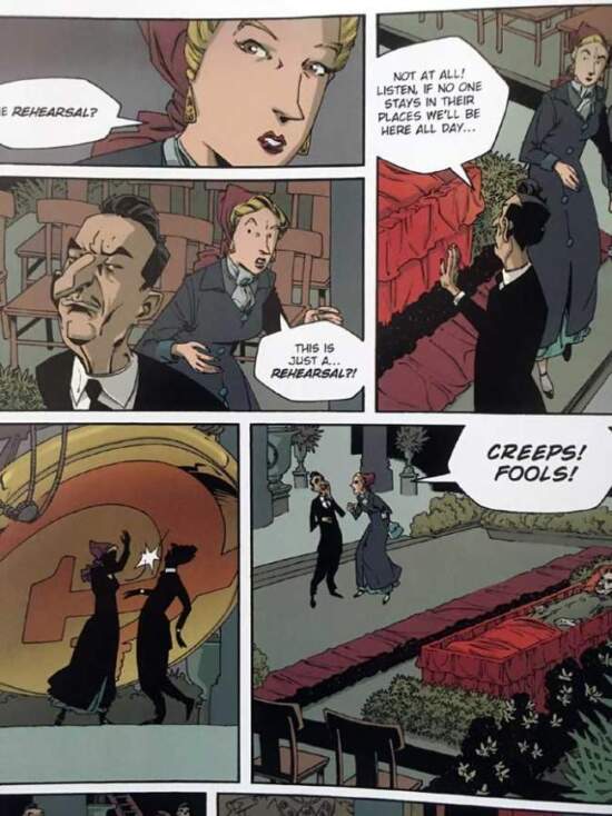 On a whim, Beria has destroyed a family and framed a man for raping his own daughter. It is utterly horrible, and immediately defines the character as something somehow worse than a rapist. All of the other interactions and emotions involving Beria throughout the story, from fear to hatred to, finally, Yudena’s effervescent joy at having witnessed both Stalin and Beria enter the grave, have their roots in these early pages. And the reader, too, because of the skill with which Mr Nury captures Beria’s animalistic and amoral lusts, cannot help but also rejoice in Beria’s execution.