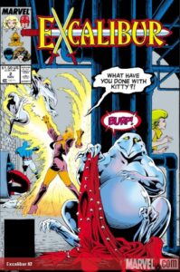 Excalibur, created by X-Men luminary Chris Claremont, was a very popular title when first released. It featured some characters from the X-Men roster, and had a decided fun theme to the stories, in marked contrast to the desperate, life-or-death battles which featured in Uncanny X-Men at the time. The superhero team primarily explored multiple dimensions, often encountering alternate universe versions of themselves. The title featured some very funny cover art by British illustrator Alan Davis.