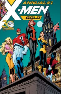 The 2017 annual for US comic book publisher Marvel Comics’ title X-Men: Gold is unusual. The publication may dampen comic book readers’ expectations of a comic book touted as an “annual.” First, it does not have a longer-than-usual page count compared to its monthly counterpart. Second, it is a single self-contained story: in contemporary times, “annuals” customarily feature multiple stories and/or extra short segments, or conclusions to very long running storylines.