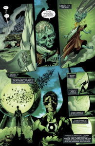 This could be a passage from John Milton’s Paradise Lost (1667) where the angels who rebelled against God are cast down into the pit and look up at Heaven. It is entirely devoid of cliche. This theme continues to the end of the issue. When The Drowned is recruited for mayhem in a similar fashion as the Batman/Green Lantern character, the honeyed words of a devil spill from the Batman/Joker composite’s lips: