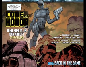 The comic delivers a heavy dose of action, mandatory in a first issue involving assassins. In this case, it works because the action scenes serve as an introduction for Honor Guest, particularly her inhuman powers (she can create a localized field that negates all sound) as well as the differences between her past and present life.