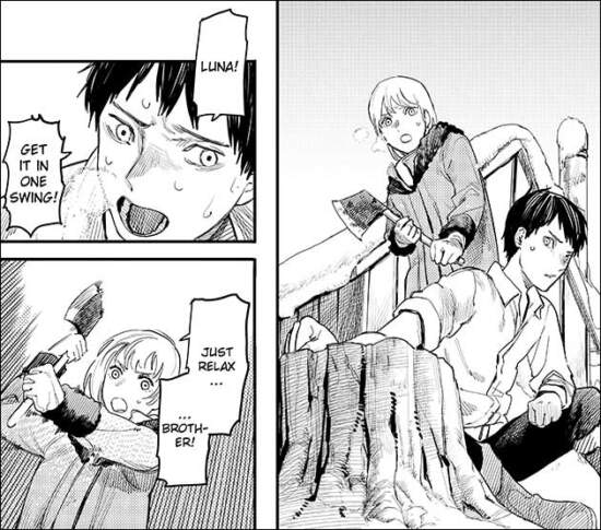 From the Viz website: After being found in the snow near death, orphans—and two such Blessed—Agni and Luna are taken in by a nearby village and nursed back to health. To show his gratitude, Agni uses his regenerative abilities to provide the village with fresh meat…his own…. Unfortunately, soldiers from Behemdorg—the kingdom seeking to defeat the Ice Witch it believes is causing all the world’s suffering—are nearby, and it isn’t long before they find the village, ransacking it to replenish their supplies. And as they do, they stumble upon the stores of meat Agni’s been providing them.