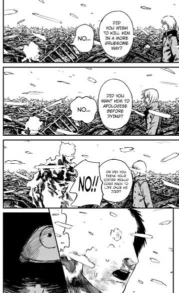 Chapter 82 is a remarkable piece of writing. The tile concludes with Chapter 83. Fire Punch is available in English from Viz’s website.