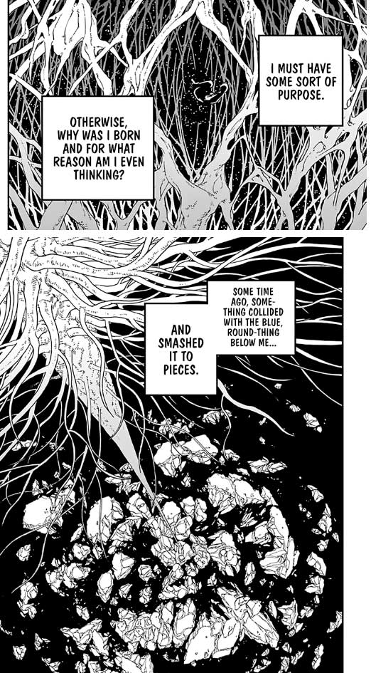 Tens of thousands of years pass. We as readers observe, and are chilled by the sense of the passage of time. The consideration of the passage of time, and the existential consequences of such contemplation, are well-beyond what we expect of shonen manga, and unexpectedly elevate the subject matter of this title.