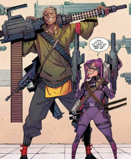 Another favorable aspect of this new Hit-Girl comic is that it does not all revolve around the titular character. We get a glimpse of other players in the mix, from Fabio Mendoza’s father and brother, who are portrayed as massively influential and psychopathic enough to treat the capture of Fabio as a form of martyrdom for their group, and Hit-Girl’s client who turns out to be as scared of Hit-Girl as she is of the gangs in her city, with revenge being her biggest motivation for summoning the vigilante.