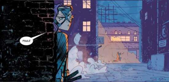 It has already been addressed in the original series and the spin-offs, but the reader is reminded in Hit-Girl #1 that Dave as the hero Kick-Ass provides a little bit of help to Hit-Girl in the field as her sidekick. But his ultimate purpose is to keep the young girl company (after her father Big Daddy was murdered) since fighting crime can get lonely without a buddy tagging along. When it comes to fighting, it was still mostly Hit-Girl doing all the work. The comic emphasizes this by showing Hit-Girl recruiting another man, named Paul, to fill the role of Kick-Ass only to have him quit in the middle of an operation.