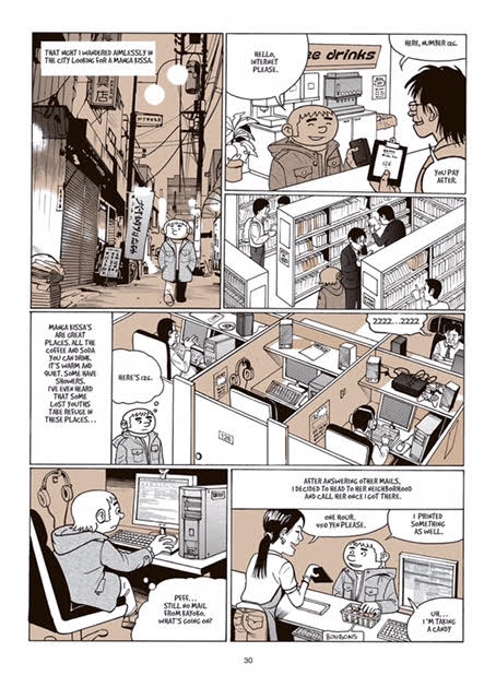 When bathing in that deepest of self-absorbed writing indulgence, the autobiography, there is a natural tendency for the unsophisticated towards apology, justification, or penitence. SuperTokyoLand is an autobiographical adventure of a French cartoonist’s extended stay in Japan, but has none of these things. As an expatriate living in a country with its particular customs and eccentricities, writer Benjamin Reiss spends time scrubbing away at his mild culture shock, with his story told as a flashback during a shared ride to Lyon.