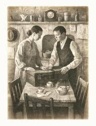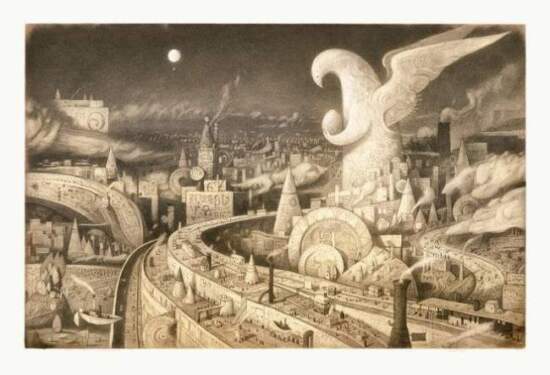 The Father is very reliant on the kindness of strangers to help him understand directions and maps. It seems many of the residents who assist him have left their homes to come to the city to escape their respective points of origin. These are told to the Father in haunting ways. One elderly man working in a factory has a history, where marched in a patriotic column of troops from his pretty village towards war, stumbled through mud and then skeletons, and then returned on crutches and missing a leg, the sole survivor of his fellow soldiers, to find his village in ruins. The man must look away as he concludes his story.