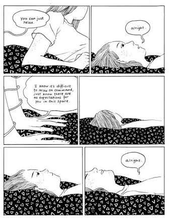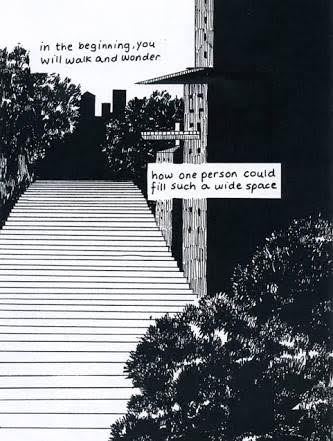 And then, a moment of catharsis. The woman is screaming, with fists clenched, into an empty room. She confronts the void. “Until finally… they crack open, like a chunk of ice. A massive space will form.” And these words sit alone in the blank sheet of the page.
