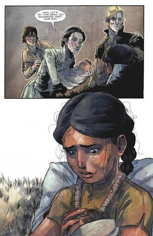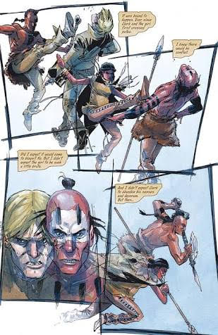 As for the extremely capable Sacagawea, she has expressly stated that she regards herself as already dead. She has no qualms in navigating the band of explorers to their own deaths. (How this reconciled with the very traumatic birth of her son in this volume remains to be seen.)