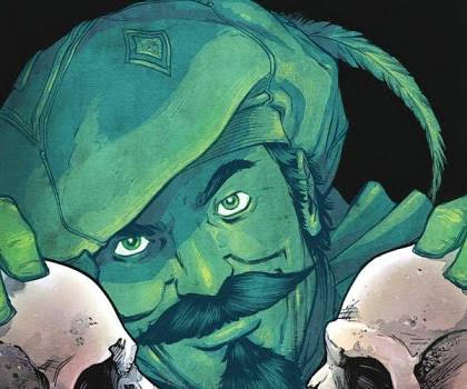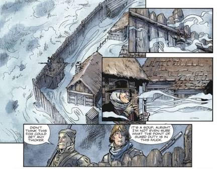 Further, Lewis and Clark have shanghaied hardened criminals into their corps. Some of these are very nasty indeed. At the conclusion of the fifth volume, one of the party, a murderer named Jensen ambushes and pushes a shipmate into what appears to be a mystical portal under an arch, for irrational reasons. From issue one, Jensen was marked as a villain, yet he has been the only one who understands that the Corps of Discovery is entirely dispensable. Another rogue is Corporal Hardy, a would-be rapist, given a reprieve if he agreed to be used as bait in the second volume to capture a monster: he lost his leg and in the fifth volume reeks of a lust for vengeance. In an early interview for website GeekedOut Nation Mr Dingess notes, “One thing to keep in mind is that some of the biggest monsters in this book aren’t in the wilderness. They’re on the boat and they put their pants on one leg at a time.”