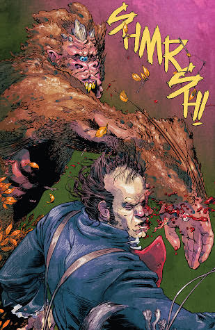 To understand the last page of the fifth volume, we must revisit the fourth volume, Sasquatch. Mr Dingess finally provides the backstory to the first unsuccessful expedition of 1801 (that which brought back the cyclops skull to President and initiated Lewis and Clark’s adventure of 1804). The Corps of Explorers find themselves desperately fighting off a horde of Sasquatches, and not doing too well of it.