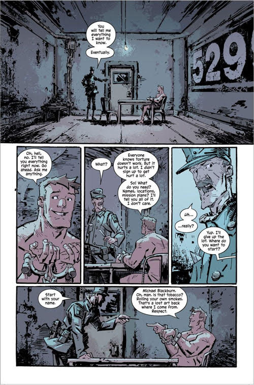 The story’s protagonist, Michael Blackburn, is an American soldier sent from the Earth (called “oldhome” by the colonists) to investigate how this scenario could have happened and yet remained a secret from not just the public-at-large but also from governments. Mr Ellis uses an interrogation of Blackburn by a colonial soldier to allow Blackburn to tell his story and provide us with a backdrop as to the creation of this new world. The plot landscape is spun extremely quickly and concisely, with an abundance of Mr Ellis’ usual penchant of quip.
