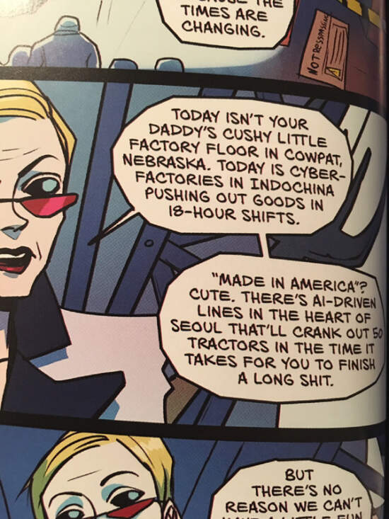 Volume One of Drugs and Wires (entitled “Down in a Hole”) is collected in a trade paperback available on Patreon. Ms Safro and her artist partner Io Black maintain a website, www.drugsandwires.fail and publish a new page of the next chapter to this story every Wednesday. Drugs and Wires should be with Dark Horse Comics or a similar publisher with a global reach, so as to better help fans of cyberpunk locate this excellent title.
