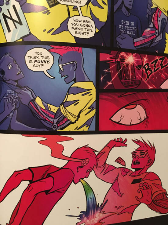 The mystery underpinning the plot – the software worm and the fact that dead gamers unexpectedly turn up alive but in hiding – is engaging. But the paramount value of this comic is that it is genuinely funny, in a very dark and grubby sort of way.