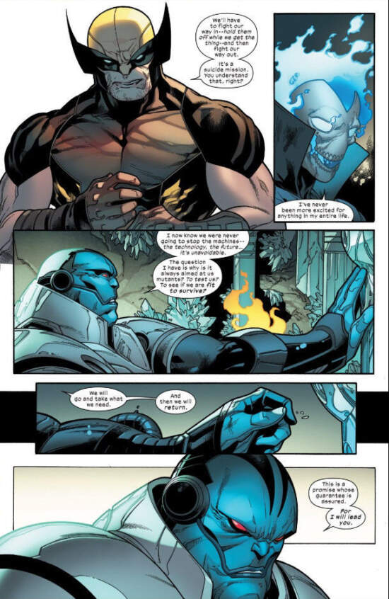 In that regard, Mr Hickman can take great and meticulous delight in writing this extraordinarily captivating story, knowing that some of the concepts which would offend the X-Men’s long-standing readers – an effeminate Mr Sinister, Professor Xavier making peace with Apocalypse under golden sunbeams, the reincarnation of the dead through a combination of mutant powers, the X-Men team leader Storm sounding like a brainwashed mutant zealot – will never actually occur. Perhaps this liberty to create gives the story its breadth and inspiration.