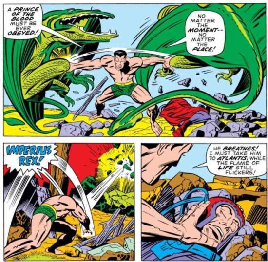 Attacking Manhattan and the Surface World has become a hobby. Diving into attack, usually wielding a big yellow trident, Namor would yell his warcry: “Imperius Rex!” This is Latin for “Imperial king!”. Why Namor would scream out his job title in a dead language his unknown.