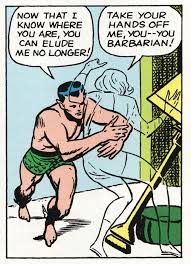 Namor has consistently been a tetchy character. In his initial appearance, Namor had no real qualms about killing two hapless salvage divers. Eight issues later, during a fight with a superhero called The Human Torch (the first inter-title crossover of comic book characters), Namor releases Bronx Zoo’s herd of elephants and causes a stampede. But by the time the character starred in his own series in 1941, the Sub-Mariner was busy, like the rest of American superheroes of the era, fighting Nazis and then after the attack on Pearl Harbour, the Japanese. Once the war was over, Namor went out of print as superheroes mostly fell out of favour and both Westerns and war comics came into fashion. A brief flirtation with the character during the 1950s failed.