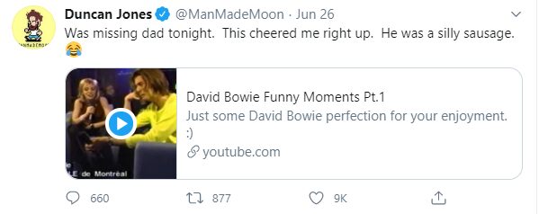 Poignantly, Mr Bowie’s son, the talented film maker Duncan Jones, posted this recently on Twitter: