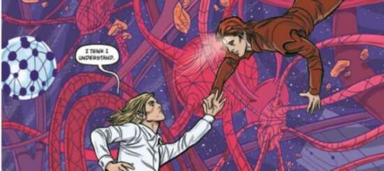 Artist Laura Allred’s style is very well suited to the trippier elements of the Bowie ethos. There are jumps through time, and exchanges between manifestations of Mr Bowie throughout his career. Blurring eyes as a means of telepathic communication seem to reference Mr Bowie’s anisocoria.