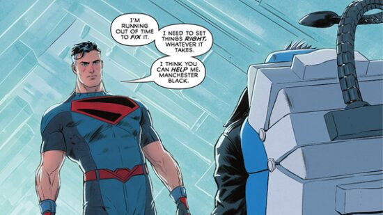 Despite Black’s protests, Superman heals his injuries at the Fortress of Solitude and attempts to talk him into using his wide array of contacts in the anti-hero community to recruit a team of superpowered individuals who aren’t afraid of exerting justice proactively. This also comes with a request to save his life. Superman is about to face a group of Phantom Zone Kryptonian criminals who are likely to kill him because of his dwindling powers. Black initially refuses, but after a while he turns back and decides to lend Superman a hand.