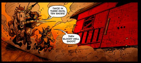 The Eldritch Kid is unquestionably a stereotype – a gritty gunslinger on a quest, with a big secret. Ten Shoes Dancing is the narrator, and is perhaps the title’s most interesting character. Ten Shoes has the unique background of being a member of the Lakota tribe but also being a graduate of Oxford University and a medical doctor. But Ten Shoes is not a mere Dr Watson to the Eldritch Kid’s Sherlock. Narrators often take a secondary role in a plot, but Ten Shoes is a witty catalyst to the adventure. Clad in a top hat, bare-chested and wielding a very large tomahawk, Ten Shoes drinks and picks up prostitutes, but is the only person capable of keeping the Eldritch Kid in check. He is the normal one within the cast of decidedly abnormal people. He also gets the best lines: