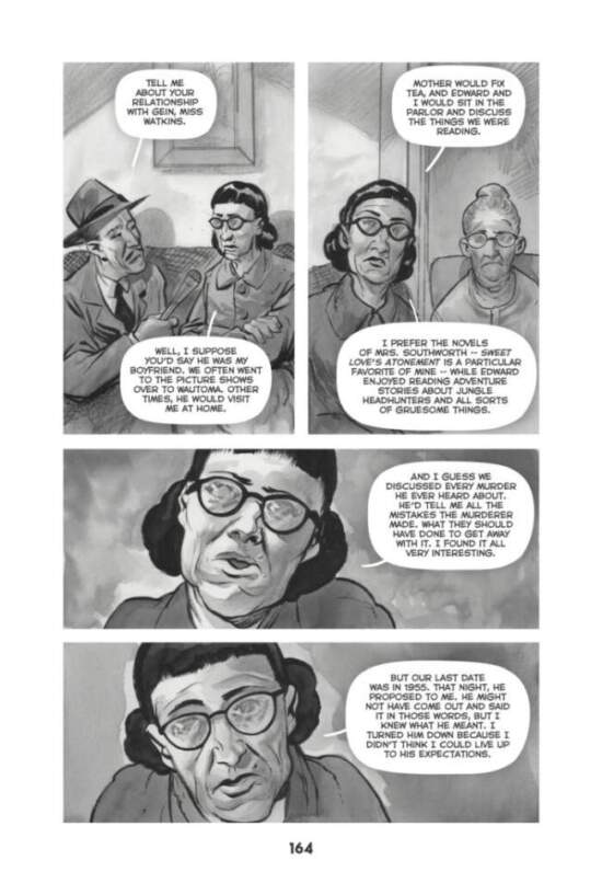 The graphic novel draws from my deeply researched book Deviant. It is completely fact-based, with the exception of the professor of religion who, towards the end, offers a theory about the sources of Gein’s madness and who serves as a vehicle for conclusions about Gein’s psychopathology that I have arrived at since the publication of my book.