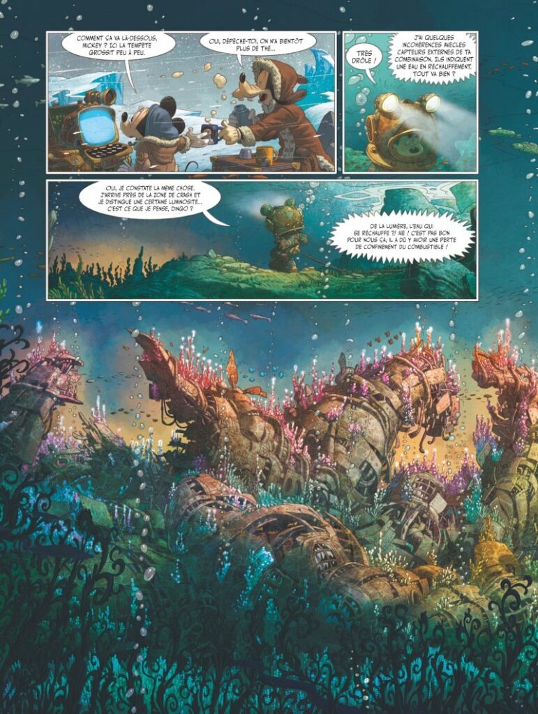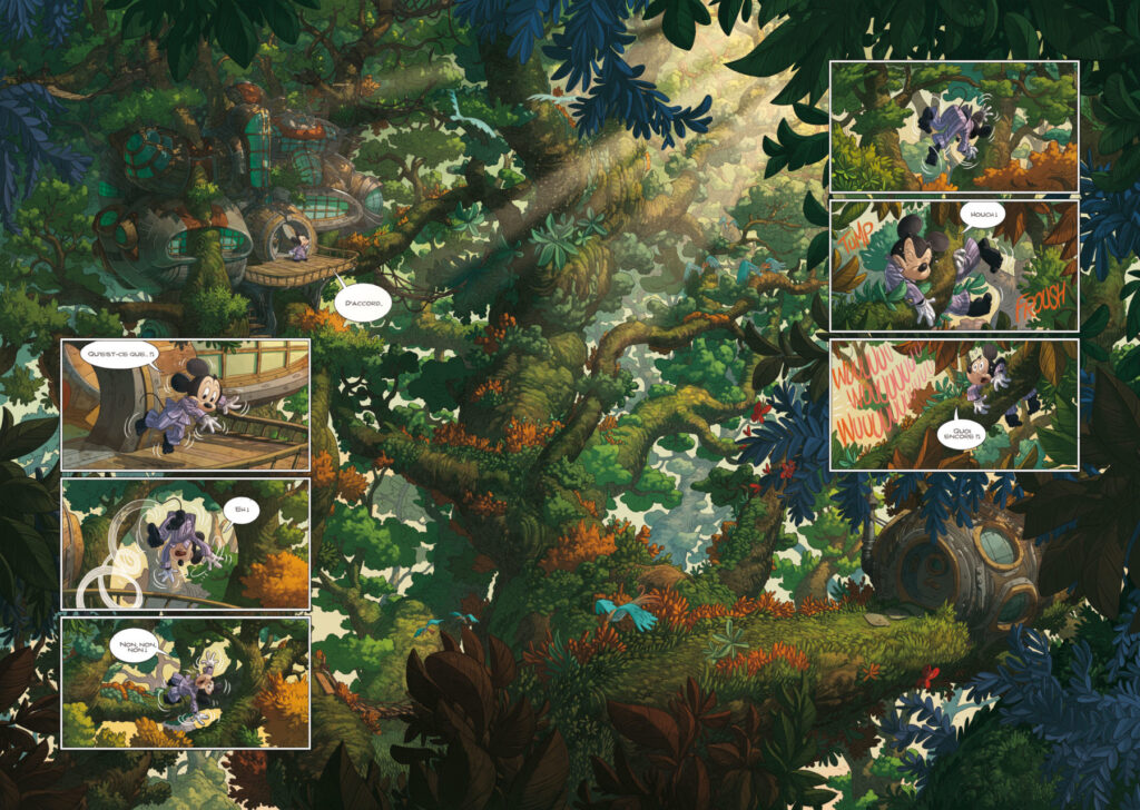 A Mickey who could be anybody else yet, things being the way they are, ends up representing a character in an adventure which has less in common with the world(s) we are familiar with. In other words, an adventure that is not completely based on the mythology of the American mouse (and his cohort), but that functions as a universe in and of itself. It is a place where imagination is given ample space and freedom or, rather, where the writer and the artist are allowed to do whatever they want.