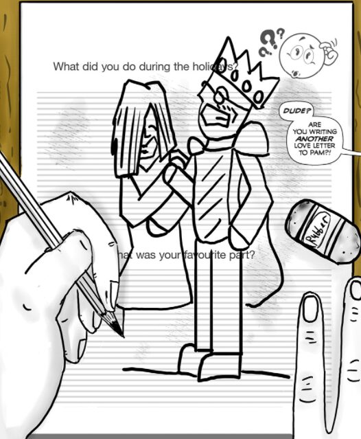 This comic, written and drawn by Declan Miller, is set in a high school in Alice Springs, a large town in central Australia. There are two main characters: lonely Pam, who lives with her uncle; and Ross, a dorky boy with a crush on Pam.