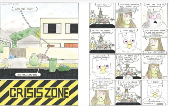 Watch Megg attempt to bury herself in a digital world of escapism! See Mogg fall down the rabbit hole of paranoia and conspiracy theories! Experience Owl’s metamorphosis from timid and uptight worrywort to a no-holds-barred, asskicking leader and back again! Witness Werewolf Jones’s journey from reluctant erotic performer, to viral TikTok stardom, to Netflix sensation! Bouncing rapidly between comedy, horror, action, and relational soap-operatics, Crisis Zone refuses to take the pedal off the gas as we all hurtle towards unknown destinations.