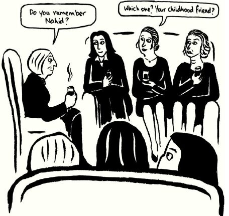 A graphic novel of hers that has not, as of yet, been adapted into film, that’s likely a hard sell for any studios or investors, is Embroderies. The title refers not only the sewing craft of adding yarn to cloth, but is the nickname for a type of operation that’s more common in the Middle East, which involves restoring the original shape of the hymen. It’s directly talked about as something often done for the pleasure of husbands, and also because sometimes, a young woman may wish to seem “virginal” on her wedding night.