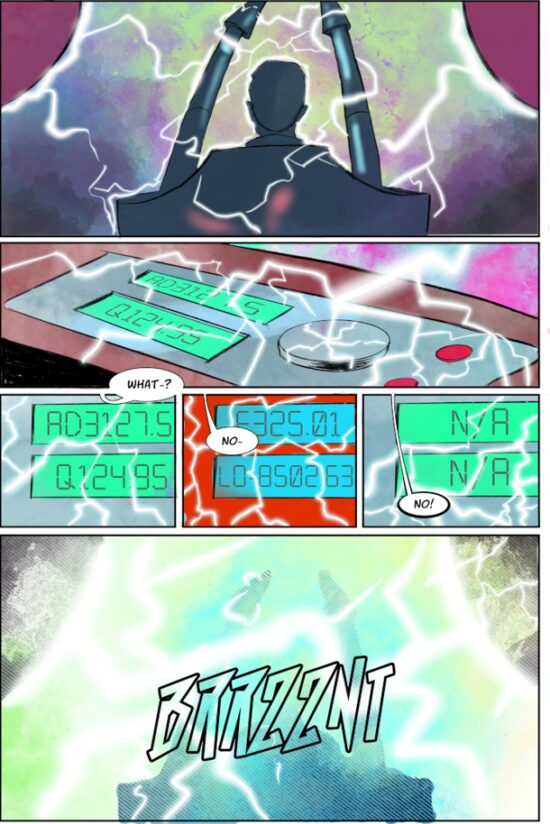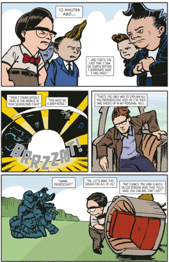 FPC : I’m not sure that a “mad scientist” was the actual idea we had, but again, we were going for a retro sci-fi vibe, and a lot of those old characters were scientists, or had some sort of background like that. I’m not sure that science actually plays a role either. Again, we let the creators have a lot of freedom, so we didn’t have parameters set for them to keep it scientific. In fact, a lot of the times we needed to establish something about the Dimensionalizer or the multiverse, we purposefully made quasi-scientific words to fit our purposes, like the quantum compass that a lot of the story hinges upon.