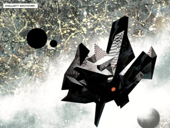 Staying in the shadow of Shakespeare’s rebuilt Globe Theatre in Southwark on the Thames, your reviewer picked up the collected edition of the science fiction title Decorum at a comic shop on a recent business trip to London, and then spent what should have been a busy work-related afternoon instead fascinated by the (literal) universe that writer Jonathan Hickman and artist Mike Huddleston have created.