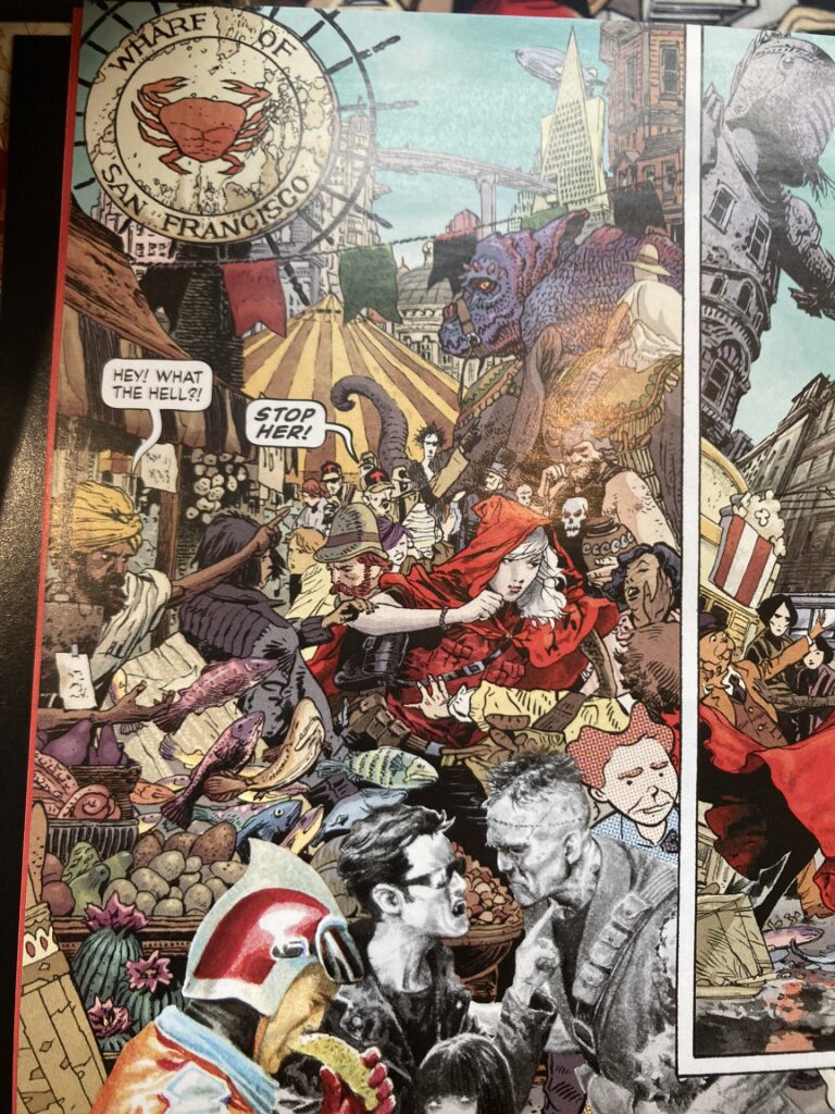 In their praise, Mr Hutchinson, Mr Farris Jr, and Mr Geary come close to summarising the problem with the cast and world-building. The story is a bewildering miasma. The implied premise of the title seems to be that the world within which the characters exist echoes pop culture on our earth, although this has not been expressly revealed as yet. And so we witness a messy palate of Japanese mecha; a place of shlock horror vampires, zombies and werewolves; the aforementioned Jack Kirby homage named Romulus; an elf who is part cyborg; a Star Wars-like Emperor and his dedicated daughter / servant / creepy monster; a 1930s gangster; and a chaotic and continuingly evolving place described as being San Francisco but the point at which the colours of the plot completely blur into grey.