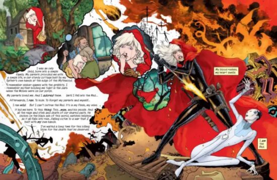“When you’re shoving this much raw creativity in the audience’s face from the get-go, sometimes you need a more traditional story structure for readers to cling to, like a life raft in the middle of the ocean. We don’t need a complex story in the first issue, we just need plot momentum and engaging characters to draw us into this world of dreams and nightmares, and they more than deliver that.”