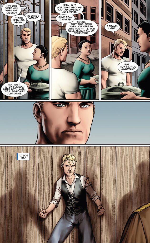 But set that to the side. This comic is excellent. It is not the costume which makes Captain America. The issue reveals that it is grit, adversity, courage, and kindness which makes the man a hero.