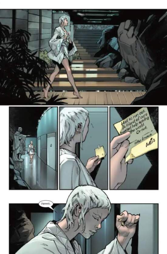 While in other Marvel superhero titles, there is a direct line – some glowing portal or another – to visit the incomprehensible powers which sit up the back of Marvel’s multiverse, here, instead, it is an arduous and mercantile journey. By “mercantile” we mean that there are trades to be had along the way. The pathway is so daunting that Nimue de Lac, an associate of the wizard Merlin (who is probably familiar to comic book readers by way of DC Comics’ classic title Camelot 3000), immediately bows out. She wants nothing of it. Aiko for her part wants to appear before the Tribunal to make a case for the reversal of a brutal decision by Aiko, which has seen Aiko’s protege Mia deprived of access to a life of magic.
