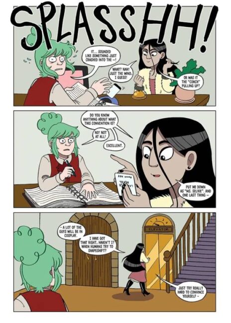 Who Killed Nessie? is a fantasy graphic novel from writer Paul Cornell and artist Rachael Smith, issued by our favourite British publisher, Avery Hill Press. It follows Lyndsay Grockle, a young woman hired to manage a hotel for the weekend as it hosts a rather unusual convention—its attendees are not humans, but mythical creatures and legendary cryptids. The guest list includes legendary creatures like the Loch Ness Monster, the Wendigo, the Yeti, mixed with contemporary figures like the Slender Man.